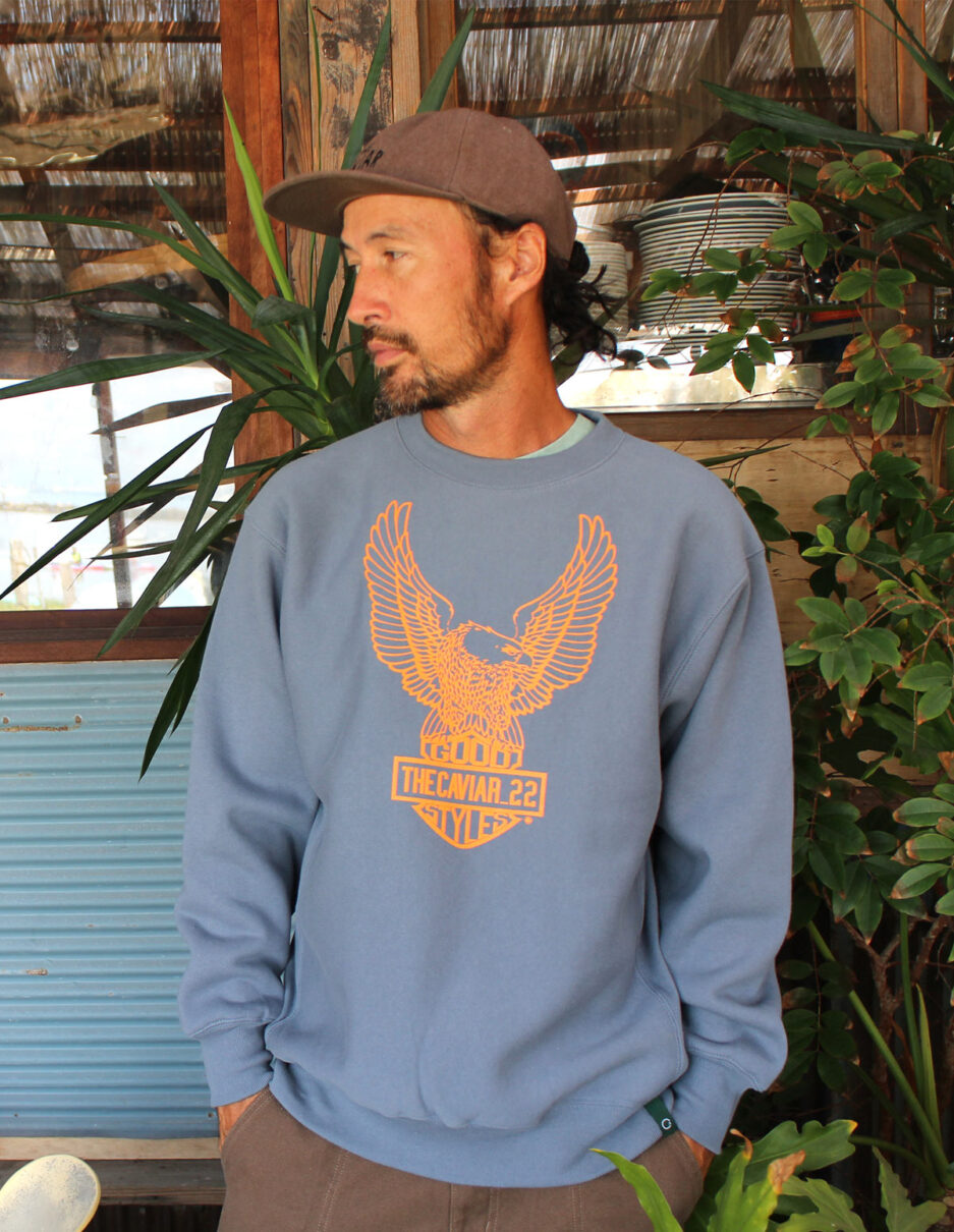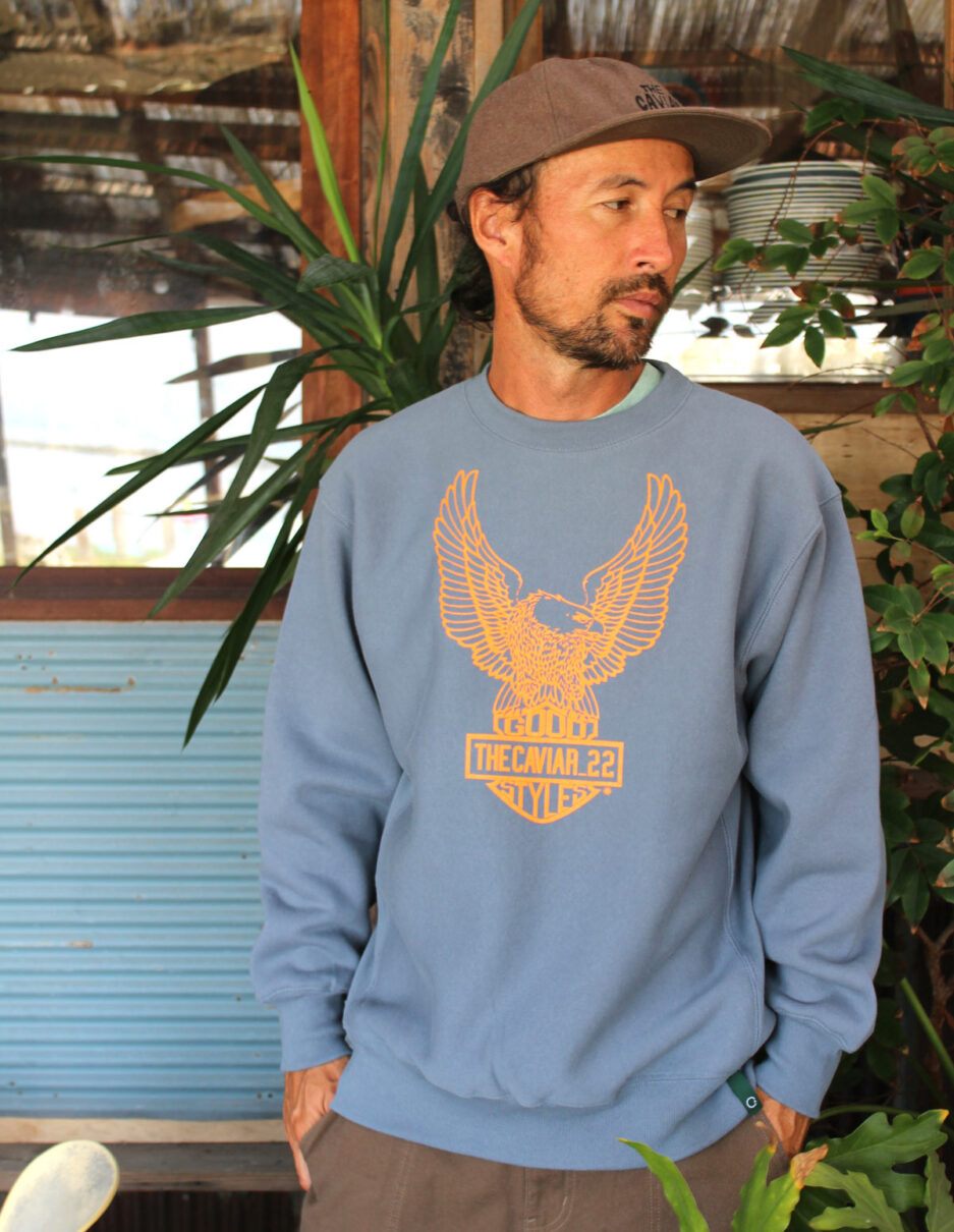 12オンスのヘビーウェイトスウェット素材を使用したトレーナー。アメカジ王道のヘビーウェイト素材にモーターサイクルスタイルのグラフィックは着こむほどに愛着がわく鉄板アイテムとなっています。