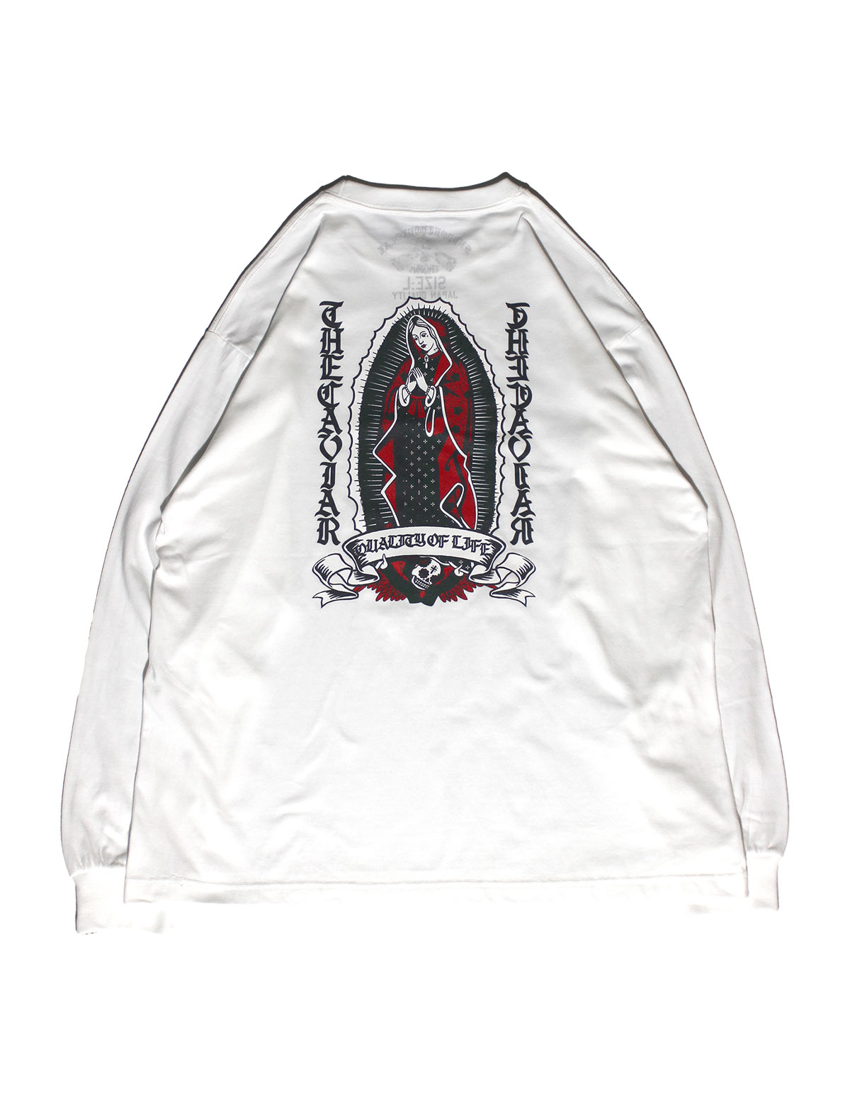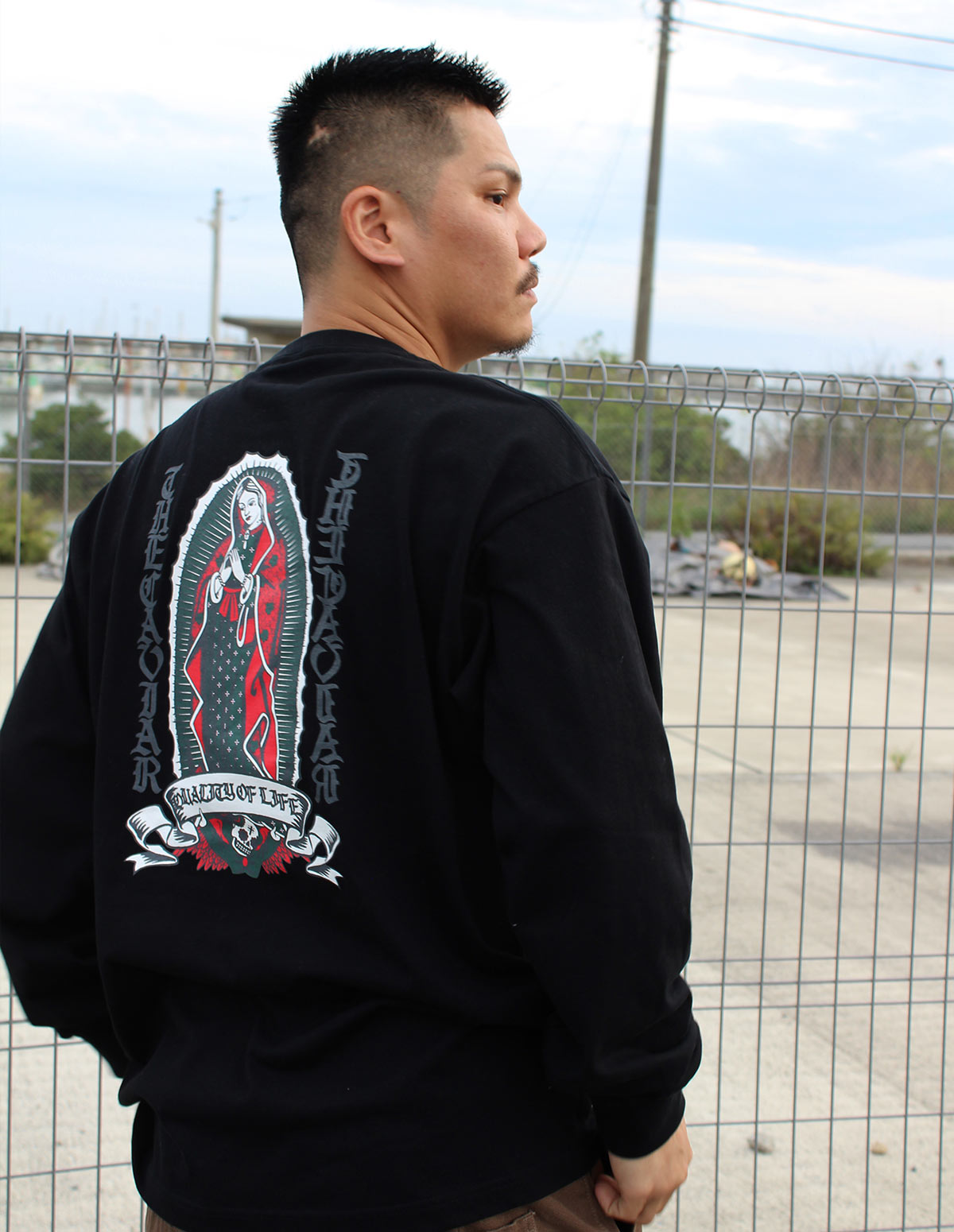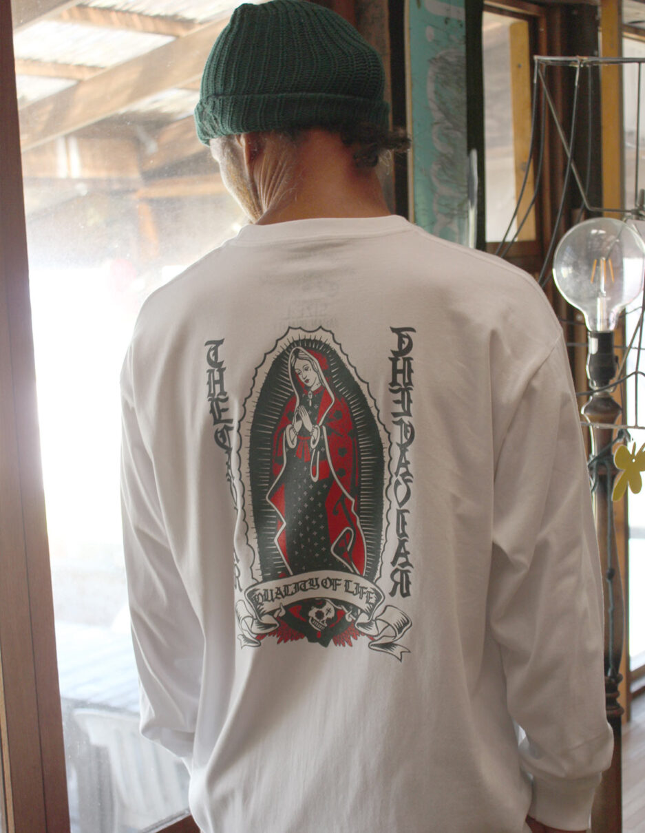 上質な6.2オンスのコーマ糸を使用した定番プリントロングスリーブTee。どこかイナたい雰囲気を醸す新作グラフィック“GUADALUPE”は懐かしくも新鮮さを感じ、コーディネートをスタイリッシュにまとめ上げます。