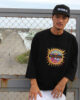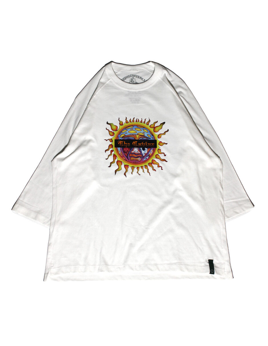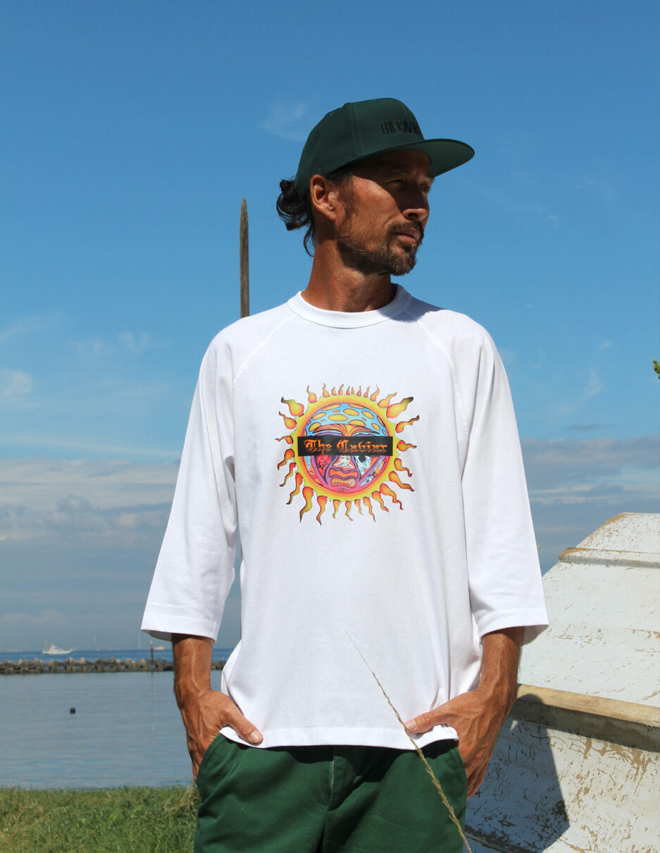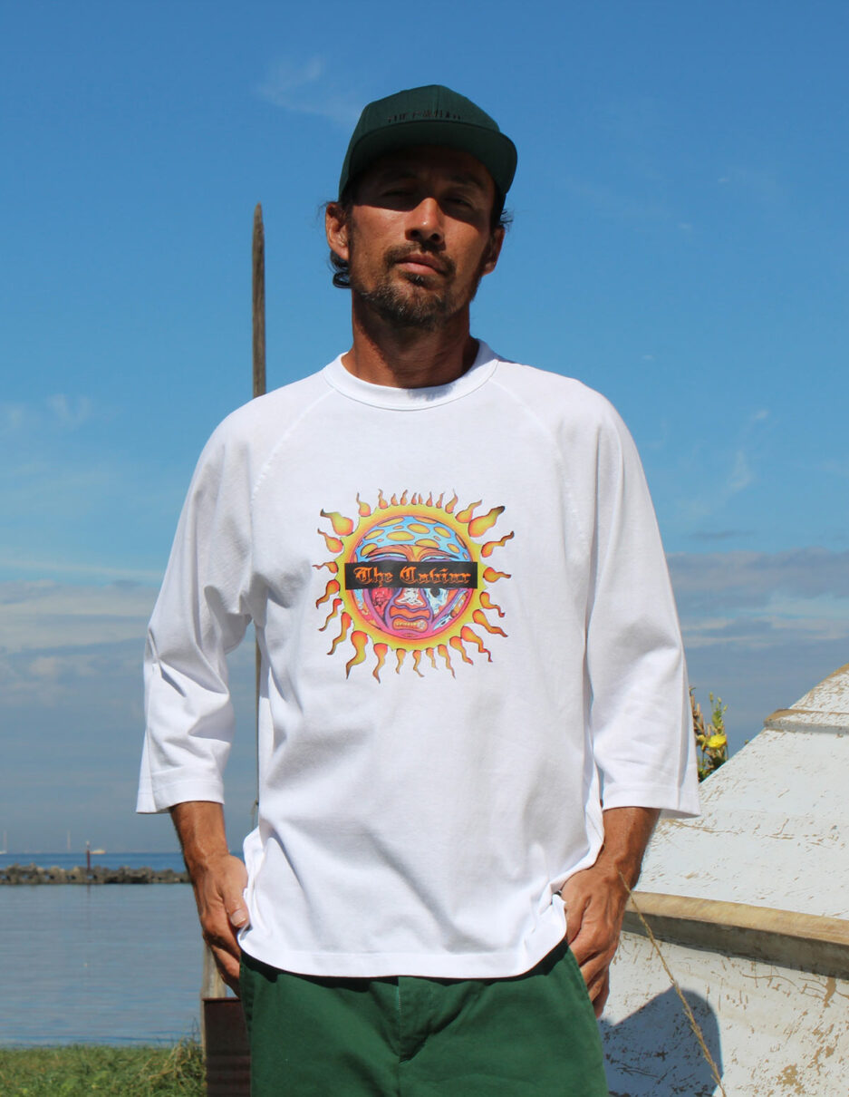 6.2オンスのざっくりとしたオープンエンド素材を使用したラグランTee。襟元の二本針バインダー仕様&裾の段違いスリットと細部にもぬかりの無いこだわりを詰めた7分袖に、カリフォルニアを代表するバンドのアルバムジャケットをオマージュした堪らないデザインです。